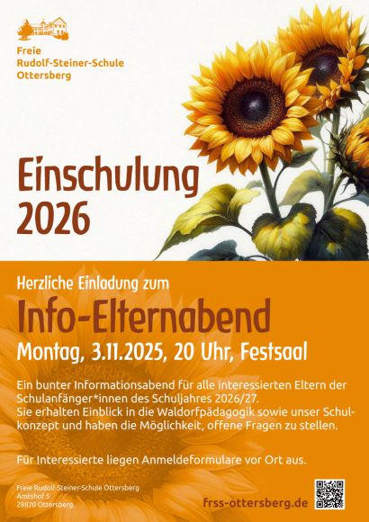 Bei unserem Info- Elternabend für die Einschulung 8/2026 für interessierte Eltern geben wir Ihnen Einblicke in die Waldorfpädagogik, die Unterrichtsfächer und wir beantworten sehr gerne Ihre Fragen!